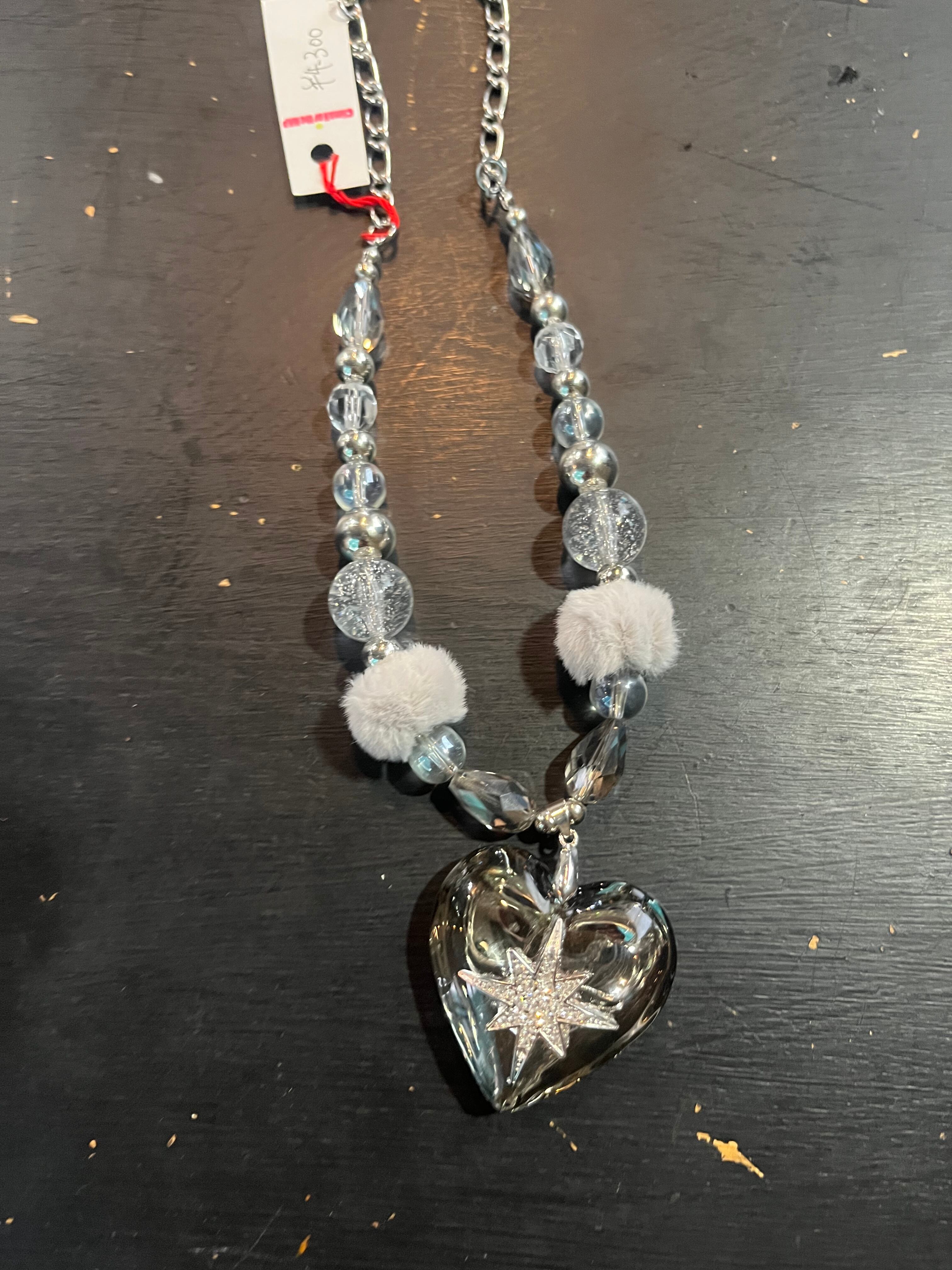 シルバーカラーのハートモチーフアクセサリーはこれからの季節にも活躍します。首元鮮やかに飾ります